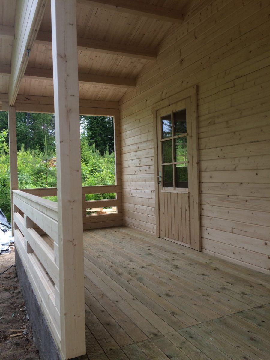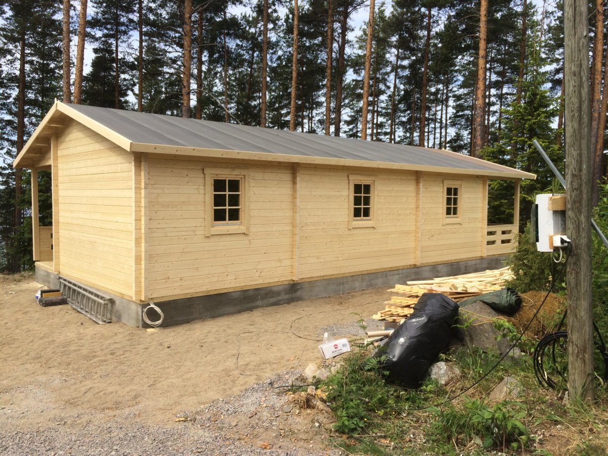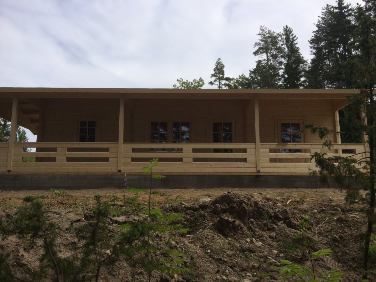 Tootsime ja paigaldasime eritellimusel 12 x 6 m puitmaja meie Soome kliendile. Korraliku ja loodis betoonplaadi valmistas kohalik ehitusfirma ühe päevaga, seejärel kulus viis päeva vundamendi kivistumiseks ning siis paigaldasime maja kolme päevaga. Enne maja kasutuselevõttu on veel vajalik paigaldada elekter ja katta maja puidukaitselasuuriga.